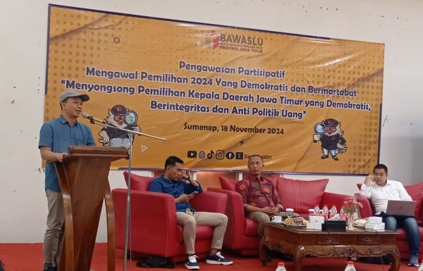 SUMENEP, DAPURPOS.Com – Senin 18 November 2024 Badan Pengawas Pemilu (Bawaslu) Provinsi Jawa Timur, hari ini melakukan kunjungan kerja ke Kabupaten Sumenep. Kunjungan ini bertujuan untuk melakukan pengawasan dan evaluasi terhadap persiapan pelaksanaan pemilu di tingkat kabupaten, serta memberikan arahan terkait pentingnya pengawasan yang ketat dan independen pada proses demokrasi di wilayah tersebut.menyelenggarakan kegiatan sosialisasi pengawasan partisipatif bertajuk “Menyongsong Pemilukada yang Berintegritas dan Anti Uang” bertempat di Hotel El Malik, Kecamatan Kota Sumenep