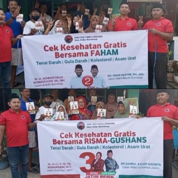Tes kesehatan gratis yang digelar oleh Pimpinan Anak Cabang PDI P Kecamatan Kota Sumenep akan di selenggarakan di sejumlah titik di kecamatan kota. Program tersebut dilakukan dengan bantuan para relawan pendukung mereka, tak terkecuali mesin Partai.