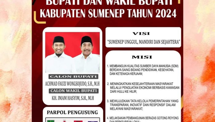 Berikut visi dan misi paslon nomer urut 2 Bupati dan Wakil Bupati Sumenep pada Pemilihan Kepala Daerah (Pilkada) Serentak 2024: